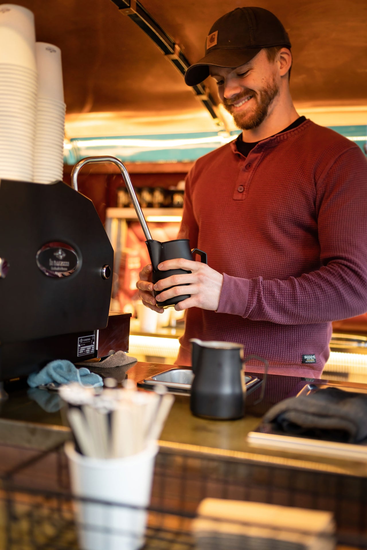 Austen (the guy to the left way too happy about steaming milk) discovered his passion for coffee during his travels across Australia. It was throughout this time where he began to fully appreciate the rabbit hole that is speciality coffee.